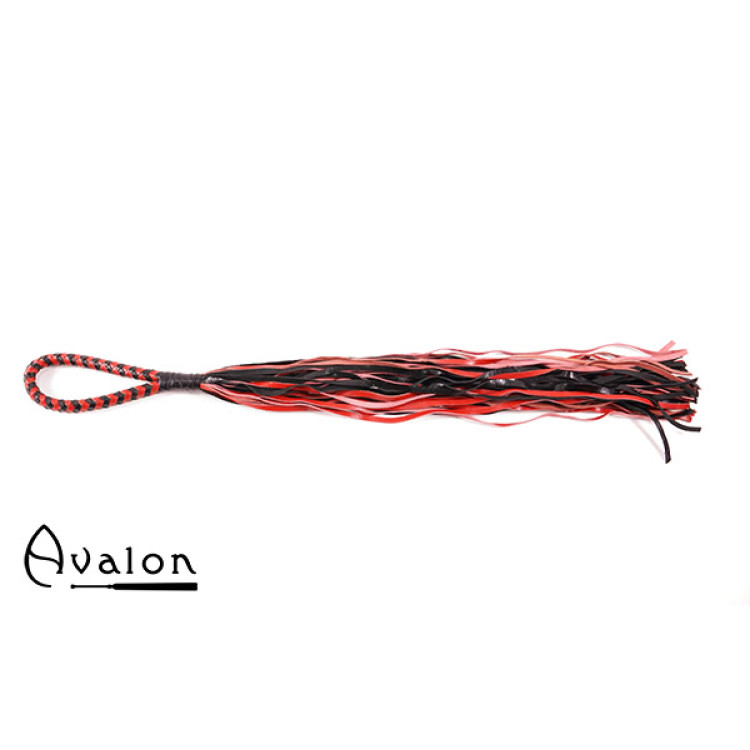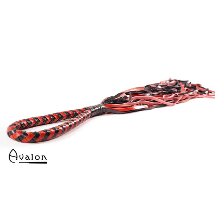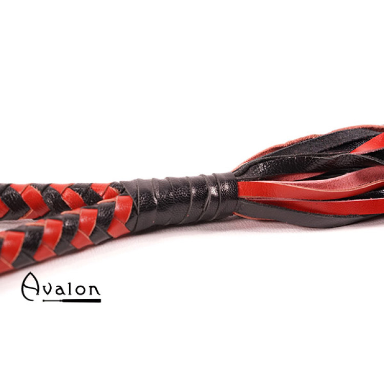 Avalon - MADOC - Sort og Rød Flogger med Loop Lærhåndtak