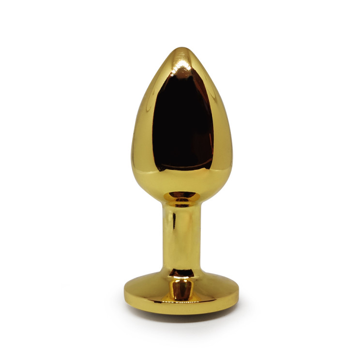 BQS - Buttplug i gullfarget metall med Krystall - Klar - Small