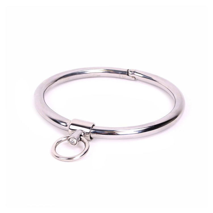 Tykt, rundt stålcollar med O-ring og dekorativ krystall.