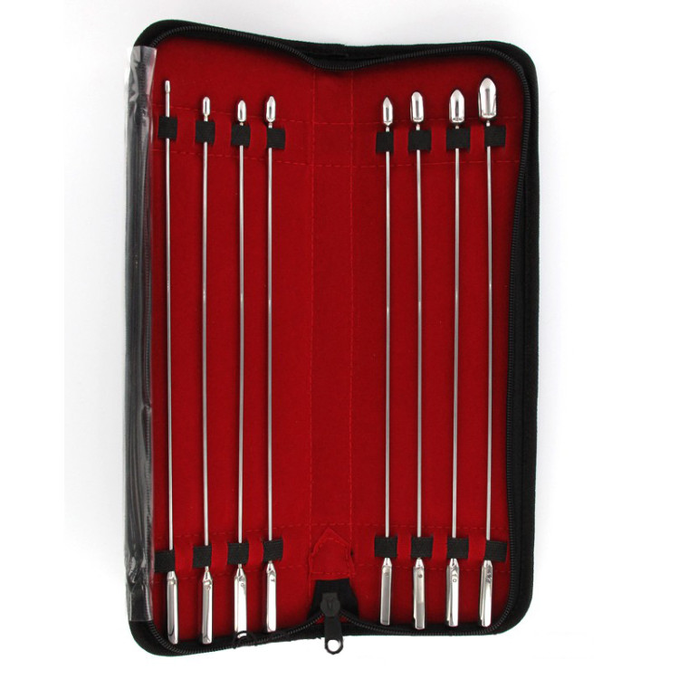 Dilatorsett med hele 8 forskjellige størrelser, til utvidelse av urinrøret.