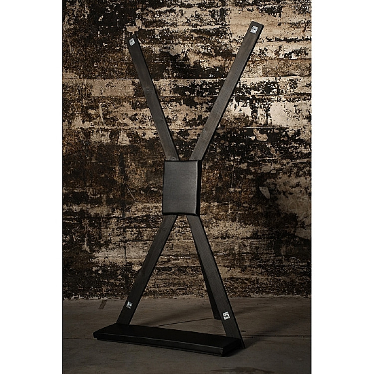 Dette andreaskorset er en kombinasjon av sort tre og skai-lær for en klassisk dungeon-look.