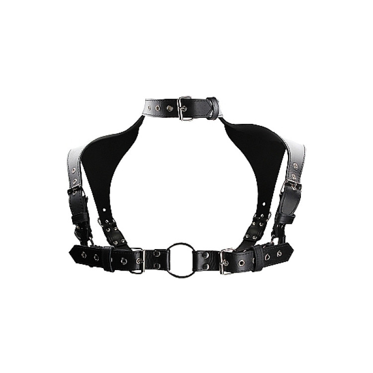 Harness med tykke, sorte skinnskuldre som påkaller oppmerksomhet, samtidig som det har et sterkt og maskulint utrykk. Collaret sitter fast i harnessen og gjør leken enkel!