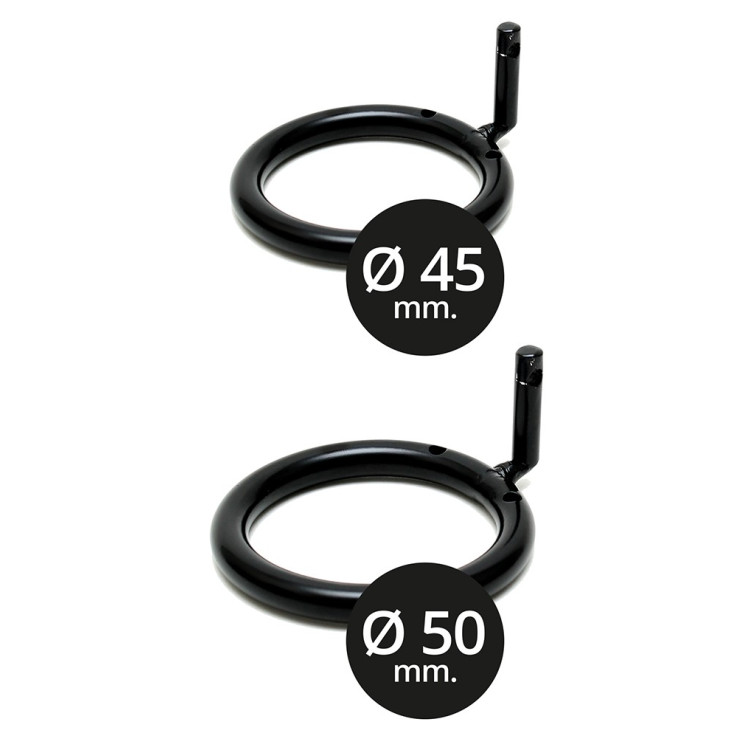 Medfølger to hengelåser, to nøkler per hengelås og en oppbevaringspose. To ringer med Ø45 og 50mm medfølger, slik at den passer deg perfekt.