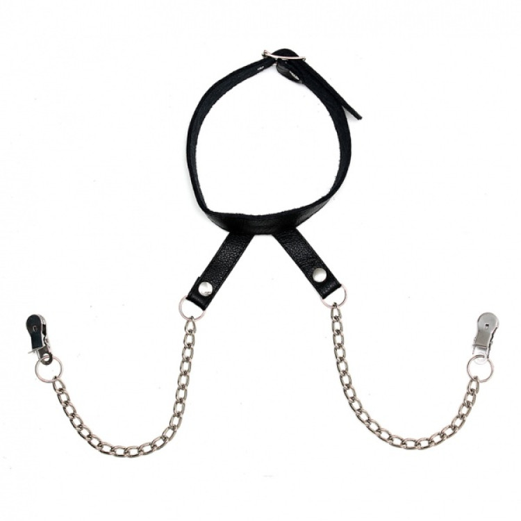 Nøkkelord: rimba, collar, hals, brystklyper, clamps, klyper, metall, lær, nipple, leather