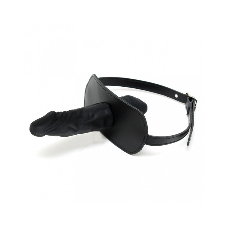 Gag av lær, med 2 dildoer av latex.