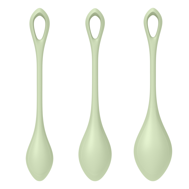 Settet inneholder tre enkeltkuler med forskjellige vekter og størrelse. Selve kulene er spiss i formen som gjør de behagelig i bruk, spesielt sammen med det hudvennlige silikonmaterialet.